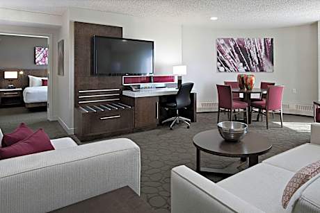 Located just minutes from downtown Edmonton, Alberta, this hotel offers comfortable guestrooms and convenient amenities in a great location near several of the city's attractions. Delta Hotels Edmonton South Conference Center features an indoor pool surrounded by floor-to-ceiling windows. The 24-hour fitness center offers cardiovascular equipment and free weights. After a swim or a workout, guests can relax in a guestroom with free high-speed internet access and a 27-inch TV with in-room movies and video games. Guests at the Delta Hotels Edmonton South Conference Center can explore the indoor and outdoor exhibits of the Canadian Petroleum Interpretive Center or the interactive displays at the Reynolds-Alberta Museum. Stay, play and explore Edmonton at Delta Hotels Edmonton South Center. You'll find everything you need for a memorable stay in an accommodations boasting key essentials like pillowtop beds, flat-screen TVs with Netflix, complimentary Wi-Fi and award-winning service. Located a short drive from the airport and close to attractions like Southgate Center, South Edmonton Common, Whyte Ave and several amateur sporting venues, you will be in the heart of everything there is to do in Edmonton. Furry family members are welcome in all our pet-friendly rooms and suites. Work out in our modern fitness center or relax in our indoor pool. Be sure to experience our hotel's food and beverage outlets including our Starbucks counter, 44o4 Restaurant and Aurora Lounge. During the winter, stay warm with our heated underground complimentary parking. Those planning gatherings in Edmonton can choose from over 29,000 square feet of inspiring venue space, ideal for everything from conferences to weddings.