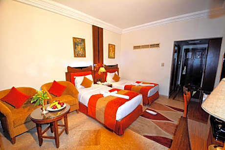 Centrally located in Luxor, between Luxor Temple and Museum, this 4-star hotel is surrounded by garden and it features an outdoor pool with sun lounger deck, a poolside bar and 4 restaurants. The property offers free WiFi at the lobby and free WiFi inside the rooms as well. Aracan Eatabe Luxor Hotel provides rooms that are comfortably furnished, include LCD TVs and offer views of the hotel’s garden or the Nile. Guests can enjoy rich breakfast, lunch, and dinner either indoors in a light-filled restaurant or outdoors by the pool. Aracan Eatabe Luxor Hotel is 4.3 mi from Luxor International Airport.