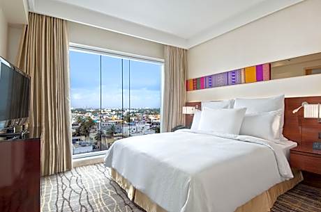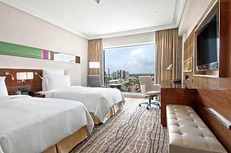 Hilton Chennai provides flawless service and all the necessary facilities for visitors.Stay connected with your associates, as complimentary Wi-Fi is available during your entire visit.When arriving by car, you'll be grateful for the on-site complimentary parking at hotel. The hotel offers reception amenities including concierge service, luggage storage and safety deposit boxes to ensure a comfortable stay for guests.Should you require it, the tours can even assist you in booking tickets and securing reservations for the finest shows and events in the vicinity.Whether you're here for an extended stay or simply require fresh garments, the hotel ensures your cherished travel attire remains spotless and accessible with the convenience of laundry service located on the premises. Your stay will be comfortable with the presence of 24-hour room service, room service and daily housekeeping as an in-room amenity for your relaxation and enjoyment. In order to ensure the utmost level of relaxation, the guestrooms feature an inviting design and are equipped with all basic necessities, creating a delightful stay experience.To ensure your satisfaction, certain rooms in the hotel come fitted with blackout curtains for a more pleasant stay.In select rooms, visitors can enjoy a touch of amusement with the availability of television and cable TV for their entertainment needs. Within specific rooms, instant tea and mini bar is conveniently available for your use.Understanding the significance of bathroom facilities in enhancing visitor contentment, hotel offers a hair dryer, toiletries and bathrobes within a few chosen chambers. Start your day stress-free at Hilton Chennai as breakfast is made available for you on the premises. Various excellent meal offerings at hotel ensure that enticing and easily accessible options are constantly available. Upon your arrival, don't miss experiencing bar for enjoyable in-house evening entertainment.Throughout the day, engage in the entertaining activities available at Hilton Chennai. Unwind effortlessly each day by exploring the spa, conveniently situated within the hotel. Unwind by the pool at hotel and cherish a leisurely moment.Guests who enjoy maintaining their fitness regimen while on holiday can visit the fitness center provided by hotel.