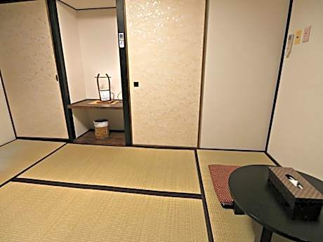 Features tatami (woven-straw) flooring and 1 large Japanese futon mattress in a private air-conditioned room with free Wi-Fi. Bathrooms and toilets are shared. Towels can be rented.