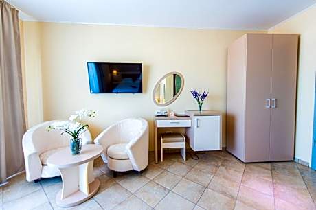 Set directly on the sandy beach of the Black Sea in Mamaia, Prestige Hotel features a bar and terraces with sea or promenade views. The on-site restaurant serves international and Romanian dishes. The rooms come with a mini-bar, an LCD TV and a wardrobe. There is also a work desk and seating area. The bathroom has a shower or spa bath. Constanta Train Station is 4.3 mi away from Hotel Prestige.