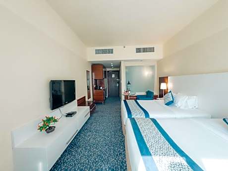 At Kingsgate Hotel Abu Dhabi, exceptional service and top-notch amenities create a memorable experience for guests.Complimentary internet access is available in the hotel to ensure you stay connected during your visit. Arrange your trips to and from the airport using the hotel's convenient transportation services booking.Amenities at taxi offered by Kingsgate Hotel Abu Dhabi simplify the organization of your excursions, tourist activities, and other adventures in Abu Dhabi. For guests with their own vehicle, parking facilities are provided. Continuously receive the support you require through front desk amenities such as concierge service, express check-in or check-out, luggage storage and safety deposit boxes. Always look your best in your preferred attire with the dry cleaning service and laundry service provided at Kingsgate Hotel Abu Dhabi.Craving relaxation? In-room amenities such as room service and daily housekeeping allow you to maximize your time spent inside the room. Additionally, you can obtain minor travel essentials and miscellaneous items at the convenience stores without departing from the Kingsgate Hotel Abu Dhabi.Due to health concerns, smoking is strictly prohibited within the entire premises of hotel.For the health and well-being of all guests and staff, smoking is restricted exclusively to assigned zones. Accommodations come equipped with all the conveniences required for a restful night's slumber. A selection of rooms feature linen service and blackout curtains to ensure your comfort and convenience. A few chosen rooms are equipped with daily newspaper, television and cable TV to ensure guest amusement. In certain rooms, the hotel offers visitors access to a refrigerator, a coffee or tea maker, bottled water and mini bar. In the hotel, certain guest bathrooms come equipped with essential bathroom amenities, such as a hair dryer, toiletries and bathrobes, ensuring a comfortable stay for guests. A delightful breakfast is the perfect way to begin your day, and at Kingsgate Hotel Abu Dhabi, you can always indulge in a scrumptious meal on-site.Allow your journey to be free from the pangs of hunger! On-site eateries offer delicious and accessible meal choices. At Kingsgate Hotel Abu Dhabi, guests with diverse dietary needs are accommodated by offering options like halal among the different types of cuisine.At Kingsgate Hotel Abu Dhabi, guests can take pleasure in the delightful recreational amenities provided for their entertainment. At the hotel fitness center, you have the option to engage in your daily exercise routine or simply alleviate your jet lag by breaking a sweat.