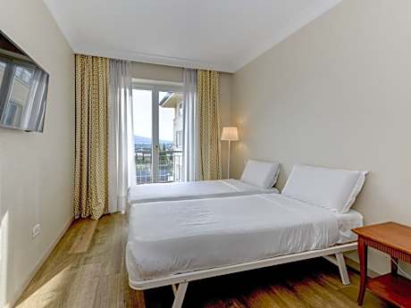 Room with attached bathroom with parquet floors. Offers free Wi-Fi, air conditioning, and a Smart TV with satellite channels.