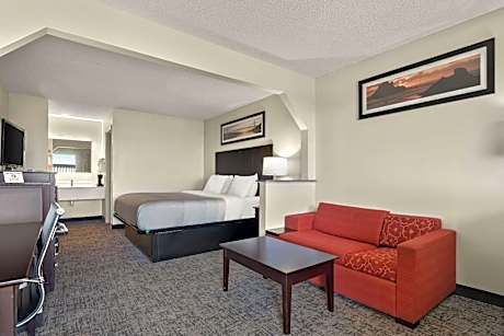 The Quality Inn & Suites hotel is located halfway between Atlanta and Savannah, off Interstate 16 on Highway 441 South. The hotel is just minutes from historic Dublin, and convenient to area attractions like the Dublin Mall, Swainsboro Technical College, Heart of Georgia Technical College, Cochran Motor Speedway and Fairview Park Hospital. Guests are offered a free hot breakfast, free local calls, free USA Today and free coffee. Hotel also provides access to the seasonal outdoor pool and exercise room with a treadmill, exercise bike and stair climber. Also hotel provides guests with free high-speed Internet access in all rooms, a business center with Internet access and access to copy and fax services. All guest rooms feature refrigerators, microwaves, coffee makers, hair dryers, irons, ironing boards and cable television with free HBO. Some rooms also have whirlpool bathtubs. In addition to standard features, king rooms are mini-suites with separate sitting areas with couches, tables and desks. Nonsmoking rooms can be requested.