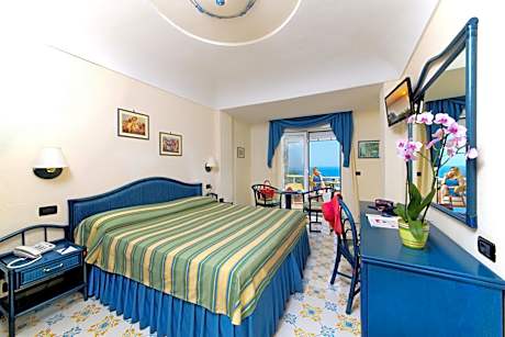 Set high on a hill overlooking the bay of Citara and the Poseidon Gardens, Sorriso Therme Resort & Spa features 5 thermal pools with hydromassage jets, open 24 hours a day. Surrounded by gardens, it offers a wellness and fitness center. Spacious and elegant, rooms come with air conditioning, a mini-bar and satellite TV. Each room has a private bathroom while some boast a balcony or terrace with sea views. Wi-Fi is free at the 4 internet points. This modern, 4-star resort is made up of several buildings. It provides 3 restaurants, including the popular Oasis restaurant with panoramic views of the coast of Ischia. You can relax at the on-site Elisir Therme Beauty & SPA, where you will find a sauna and a variety of beauty treatments. A small fresh-water pool is also available, ideal for children. The temperature of the thermal pools varies between 34° and 38°, and evening entertainment is available. Sorriso Resort & Spa provides a free shuttle to/from Citara Beach and the harbor in Forio D’Ischia. License Number(s): 15063031ALB0190, IT0
