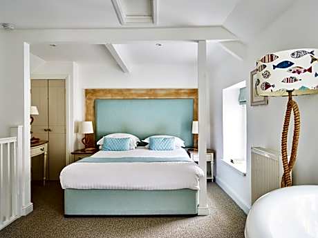 Lugger Hotel "A Bespoke Hotel" är ett unikt värdshus från 1600-talet, en vacker tillflyktsort precis vid vattenbrynet, i fiskebyn Portloe på Roselandhalvön. Dess restaurang, som tilldelats 2 AA-rosetter, har en solig terrass med utsikt över hamnen och serverar färska skaldjur och lokala råvaror. Varje rum, som ligger i 3 separata byggnader runt hamnen, är individuellt inrett och har ett lyxigt eget badrum med dusch. Portloe ligger i ett naturskyddsområde vid foten av en dal och erbjuder en pittoresk vik och en liten hamn att utforska. Gästerna kan köra 26 km till Eden Project, 13 km till Lost Gardens of Heligan eller 37 km för att besöka National Maritime Museum Cornwall i Falmouth. Observera att husdjur inte är tillåtna i följande rumstyp: Middle Cottage - med havsutsikt.