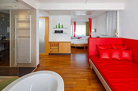 Hotel du Parc enjoys a quiet location close to a park, just a short walk from Baden’s center, the Grand Casino and the thermal spas. Free WiFi is available in the entire hotel. All rooms at Hotel du Parc provide a controlled fresh air system, a bathroom, and a mini-bar. A a welcome greeting in the room and a bottle of mineral water are provided. Guests can prepare their own tea and coffee in the room. The restaurant Elements offers creative and regional Swiss cuisine. Baden Train Station is only a 5-minute walk away from Hotel du Parc. The direct train reaches Zurich within 20 minutes and Zurich Airport can be reached within 20 minutes as well. Guests benefit from a free city ticked for leisure activities and from free access to the public transport in Baden for the duration of their stay. In addition, they can enjoy free access to the public swimming pool in Baden and free entry to various museums in the city, as well as to the Grand Casino Baden.