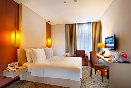 Experience an abundance of unparalleled facilities and features at Swiss-Belinn Balikpapan.Maintain seamless communication using the complimentary Wi-Fi at hotel.Effortlessly arrange transportation to and from the airport using the hotel's airport transfer services.Discovering Balikpapan becomes even more accessible through the taxi and car hire amenities provided at the hotel.For visitors traveling by automobile, complimentary parking is available.During your stay at this fantastic hotel, the attentive front desk personnel can provide you with a range of amenities such as concierge service, luggage storage and safety deposit boxes. Obtaining passes for the town's top entertainments becomes effortless with hotel's tours. At the hotel, utilize the on-site dry cleaning service and laundry service to maintain your beloved travel attire fresh, allowing you to bring fewer clothes.Craving relaxation? Make the most of your stay at the Swiss-Belinn Balikpapan with convenient amenities like 24-hour room service, room service and daily housekeeping at your disposal.Kindly note that smoking is prohibited in the hotel to ensure fresher air for all visitors.For visitors wishing to smoke, designated smoking zones can be found.At Swiss-Belinn Balikpapan, every guestroom is provided with convenient amenities and fittings to ensure a comfortable stay. Enhance your experience at hotel with the knowledge that certain rooms are equipped with blackout curtains and air conditioning for your convenience.Certain rooms boast in-room amusement features such as daily newspaper, television and cable TV, offering guests an enjoyable stay. In select rooms within the hotel, a refrigerator, a coffee or tea maker, bottled water, instant coffee, instant tea and mini bar is available to cater to your requirements when desired.It is worth noting that certain guest bathrooms feature a hair dryer, toiletries and bathrobes for your convenience. Begin your day carefree at Swiss-Belinn Balikpapan, as complimentary breakfast is offered for your convenience.Begin your day feeling refreshed and invigorated as you enjoy a delightful cup of quality coffee available at the cafe situated within the hotel.At the hotel, an assortment of easily accessible and delicious meal choices are available to satisfy your appetite whenever it strikes.At Swiss-Belinn Balikpapan, guests with diverse dietary needs are accommodated by offering an array of cuisine options, including kosher and halal. Create unforgettable moments with your fellow voyagers just steps away, at hotel's bar and nightclub, for a delightful evening together. At the hotel, discerning guests can also enjoy on-site culinary facilities like BBQ facilities tailored to their preferences. During your stay at hotel, an array of engaging activities and amenities guarantees a delightful experience.Conclude your holiday perfectly with a visit to massage, hot tub, steam room and spa on your final days. Discover the fitness amenities at hotel to maintain your health and strength during your getaway.
