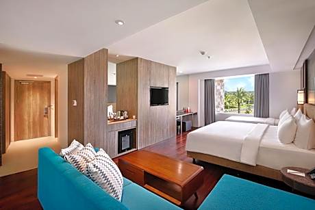 Experience an abundance of unparalleled facilities and features at Swiss-Belresort Pecatu.Maintain seamless communication using the complimentary Wi-Fi at hotel.Effortlessly arrange transportation to and from the airport using the hotel's airport transfer services. Discovering Bali becomes even more accessible through the taxi, car hire and shuttle amenities provided at the hotel.For visitors traveling by automobile, complimentary parking is available.During your stay at this fantastic hotel, the attentive front desk personnel can provide you with a range of amenities such as concierge service, express check-in or check-out, luggage storage and safety deposit boxes.For extended visits or whenever required, the dry cleaning service ensures your preferred travel garments remain fresh and accessible. Craving relaxation? Make the most of your stay at the Swiss-Belresort Pecatu with convenient amenities like 24-hour room service, room service and daily housekeeping at your disposal.For visitors wishing to smoke, designated smoking zones can be found. At Swiss-Belresort Pecatu, every guestroom is provided with convenient amenities and fittings to ensure a comfortable stay. Enhance your experience at hotel with the knowledge that certain rooms are equipped with blackout curtains and air conditioning for your convenience.At Swiss-Belresort Pecatu, each visit offers an array of intriguing room configurations, featuring accommodations with separate living room and balcony or terrace, ensuring a distinct experience every time.Certain rooms boast in-room amusement features such as television and cable TV, offering guests an enjoyable stay.In select rooms within the hotel, a refrigerator, bottled water, a coffee or tea maker, instant coffee, instant tea and mini bar is available to cater to your requirements when desired.It is worth noting that certain guest bathrooms feature a hair dryer, toiletries and bathrobes for your convenience. Begin your day with a scrumptious on-site breakfast available each morning at Swiss-Belresort Pecatu. At the hotel, an assortment of easily accessible and delicious meal choices are available to satisfy your appetite whenever it strikes. Enjoy an entertaining evening with your fellow travelers at the hotel's bar.At the hotel, discerning guests can also enjoy on-site culinary facilities like BBQ facilities tailored to their preferences. During your stay at hotel, an array of engaging activities and amenities guarantees a delightful experience.During your stay, don't forget to allocate some moments to experience the readily available shoreline.Conclude your holiday perfectly with a visit to massage and spa on your final days. Be sure to drop by the pool at hotel at least once during your stay.At Swiss-Belresort Pecatu, utmost care is taken to ensure guests' comfort. Relish your preferred beverage in your swimwear by the hotel's poolside bar. Discover the fitness amenities at hotel to maintain your health and strength during your getaway.