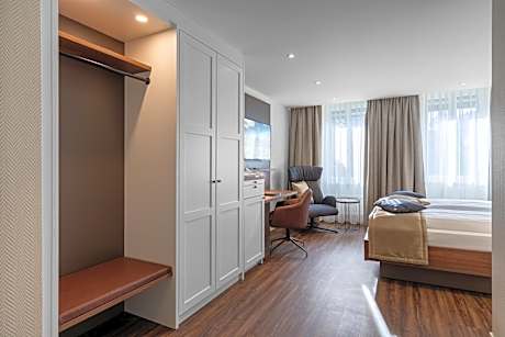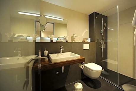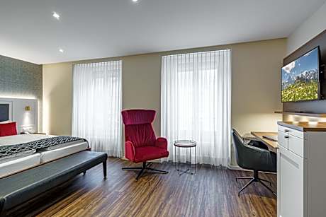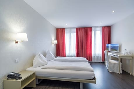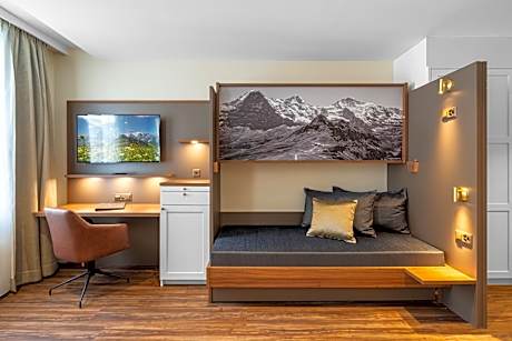 This room offers views of the Harder Kulm Mountain and comes with cable TV, a mini fridge and a bathroom with a shower or bathtub and a hairdryer. Coffee and tea making facilities are provided, as well.