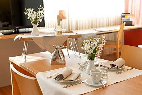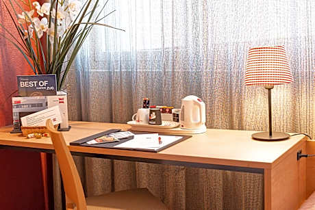 Newly opened in March 2013, the SwissEver Hotel Zug has modern rooms on the outskirts of Cham, just off highway A4 and 4 miles from Zug. It features a restaurant serving Swiss cuisine, a large terrace, free basic Wi-Fi access, and a lobby with a fireplace. The rooms include a flat-screen satellite TV featuring pay-per-view TV channels, a coffee machine, a minibar, and a bathroom with a shower and a hairdryer. Some units have a sofa and the studios and apartments feature a kitchen or a kitchenette. A bar where you can enjoy hot and cold drinks is also on site at the SwissEver Hotel. Each day, a buffet breakfast can be requested. Laundry and ironing services are available , and there is also a gym on site. Private underground parking is available for an additional fee. The Lindencham Bus Stop is 165 ft away, and Cham Train Station is just over 1 mile from the property.