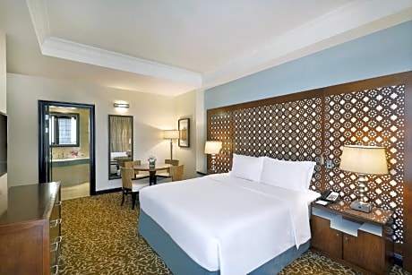 Swissotel Al Maqam Makkah provides flawless service and all the necessary facilities for visitors. Stay connected with your associates, as complimentary Wi-Fi is available during your entire visit.When arriving by car, take advantage of the hotel's convenient on-site parking facilities. Should you require assistance, the ticket service and tours can also aid in booking tickets and securing reservations at the finest shows and events in the vicinity.Whether it's an extended stay or simply needing fresh attire, laundromat and dry cleaning service provided by hotel ensures your cherished travel garments stay spotless and accessible. The hotel's room service ensures an excellent option for your stay. Need something at the last minute? The convenience stores has you covered, ensuring your requirements are met without any inconvenience.To ensure the well-being and convenience of all visitors, smoking is strictly prohibited throughout the entire hotel. In order to ensure the utmost level of relaxation, the guestrooms feature an inviting design and are equipped with all basic necessities, creating a delightful stay experience.To ensure a pleasant stay, a selection of rooms at hotel come furnished with linen service, blackout curtains and air conditioning, all designed with your ease in mind.In select rooms, visitors can enjoy a touch of amusement with the availability of television and cable TV for their entertainment needs.Within specific rooms, a refrigerator, bottled water, a coffee or tea maker and mini bar is conveniently available for your use.Understanding the significance of bathroom facilities in enhancing visitor contentment, hotel offers a hair dryer, toiletries and bathrobes within a few chosen chambers. Start your day stress-free at Swissotel Al Maqam Makkah as breakfast is made available for you on the premises. Various excellent meal offerings at hotel ensure that enticing and easily accessible options are constantly available.Visitors with specific dietary preferences can savor a variety of culinary styles at Swissotel Al Maqam Makkah, featuring halal choices to accommodate their needs. Upon your arrival, don't miss experiencing bar for enjoyable in-house evening entertainment.