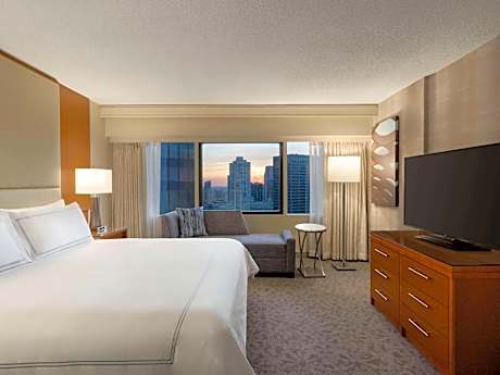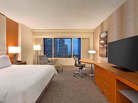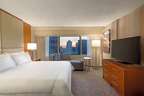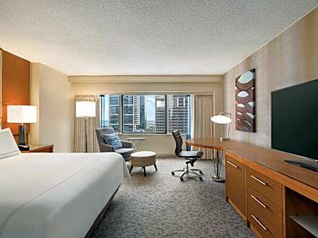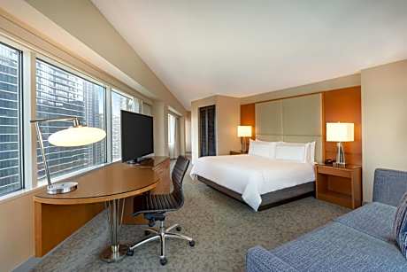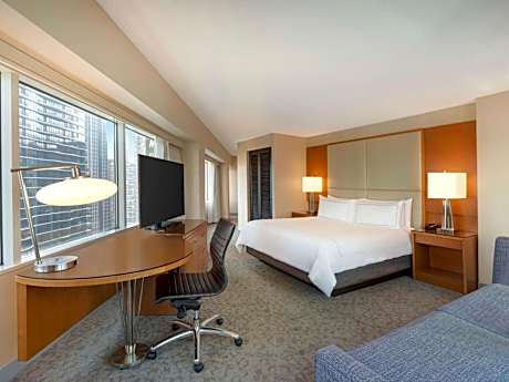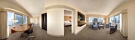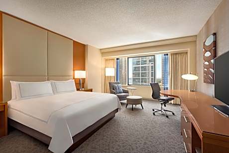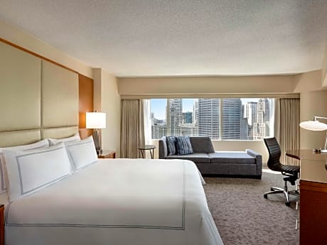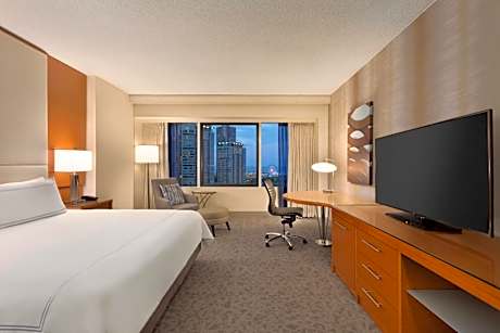 Steps away from the Lake Michigan and the luxury shops, dining and entertainment on the Magnificent Mile, this all-glass triangular hotel is located in downtown Chicago and features upscale on-site restaurants and scenic views of the city. Free WiFi is available in public areas. Every room at Swissotel Chicago provides a flat-screen LCD TV and an oversize work space with a desk and ergonomic chair. An in-room safe and coffee maker are also included. Guests can choose from an array of classic American fare from the breakfast buffet at The Palm. The Palm features premium prime beef and traditional Italian fare for lunch and dinner. For a more casual experience, the lobby lounge, Amuse, serves small plates and cocktails in a vibrant setting. The hotel also offers 65,000 square feet of meeting space. Millennium Park and the Art Institute of Chicago are both less than a mile away from the hotel. Navy Pier is a 7-minute drive away.