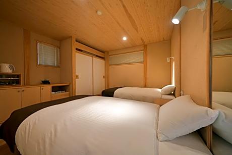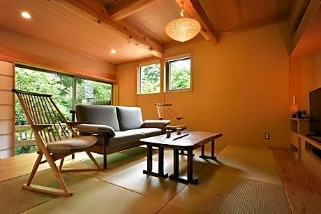 This quadruple room features a private open-air bath. The quadruple room includes a private bathroom, well-fitted with a bath, a shower, a bidet, a hairdryer and slippers. The spacious air-conditioned quadruple room features a flat-screen TV with satellite channels, tatami, a tea and coffee maker, a wardrobe as well as garden views. The unit has 2 beds and 2 futons.