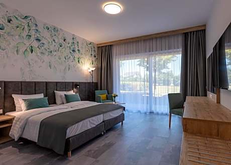 Szépia Bio and Art Hotel has a shared lounge, terrace, a restaurant and bar in Zsámbék. Featuring a seasonal outdoor swimming pool, the 4-star hotel has air-conditioned rooms with free WiFi, each with a private bathroom. The property has room service, a 24-hour front desk and currency exchange for guests. At the hotel, all rooms include a desk. Rooms come with a safety deposit box, while some rooms include a balcony and others also feature pool views. The rooms in Szépia Bio and Art Hotel are equipped with a flat-screen TV and free toiletries. Buffet and gluten-free breakfast options are available at the accommodation. Guests can relax in the spa and wellness center, including an indoor pool, a fitness center and a sauna, or in the garden equipped with a playground. The area is popular for hiking and cycling, and bike rental is available at Szépia Bio and Art Hotel. Citadella is 19 miles from the hotel, while Gellért Hill is 19 miles away. Budapest Ferenc Liszt International Airport is 27 miles from the property, and the property offers a paid airport shuttle service.