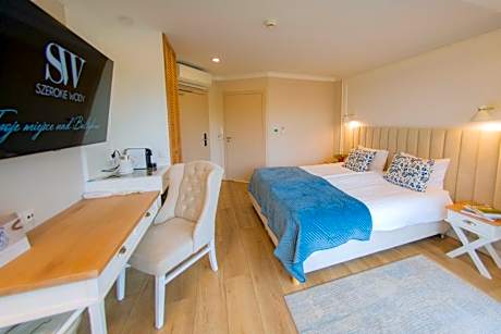 Facing the beachfront, Hotel Szerokie Wody Sea & Sand Ustka offers 4-star accommodations in Ustka and has a terrace, restaurant and bar. The property is around 19 miles from Jaroslawiec Aquapark, 25 miles from Słowiński National Park and a 8-minute walk from Ustka Pier. Free WiFi is available and private parking can be arranged at an extra charge. All guest rooms come with air conditioning, a flat-screen TV with satellite channels, a fridge, a coffee machine, a shower, free toiletries and a desk. The rooms are equipped with a private bathroom with a hairdryer, while certain rooms also offer a balcony and others also have city views. All rooms will provide guests with a closet and an electric tea pot. Breakfast is available, and includes buffet, continental and Full English/Irish options. Guests at the hotel will be able to enjoy activities in and around Ustka, like cycling. Speaking English and Polish, staff are always on hand to help at the 24-hour front desk. Popular points of interest near Hotel Szerokie Wody Sea & Sand Ustka include Ustka Beach, Ustka Lighthouse and Ustka Promenade. Gdańsk Lech Wałęsa Airport is 78 miles from the property.