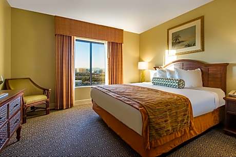 This Nevada 4-star resort features Mahana, a full-service spa, shuttle services to the Las Vegas Strip and a lazy river. 17° South Booze & Bites restaurant is located on site. Every suite at the Tahiti Village Resort and Spa includes a fully equipped kitchen or kitchenette. The suites provide a seating and dining area for the guest’s convenience. Select suites feature a spa bath, a washing machine and a balcony or patio. The Tahiti Village resort features an outdoor pool. Available activities include bracelet making, cookie decorating, sand castle contests and bingo. The Harry Reid International Airport is 4 miles from the Tahiti Village Spa. The University of Nevada is 5 miles away. Local restaurants, casinos and shopping are also located near the hotel.