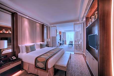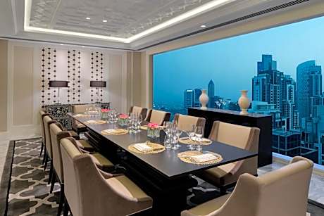 Great care is taken to ensure guests experience comfort through top-notch services and amenities. Remain linked during your visit by utilizing the complimentary internet access available.Prior to your check-in date, you can arrange airport transportation services, guaranteeing a seamless and efficient experience for both arrival and departure.Services offered by taxi, car hire and shuttle at the hotel ensure effortless exploration of Dubai.The hotel offers complimentary parking for guests who arrive with their own mode of transport. Effortlessly plan your daily activities and travel requirements with concierge service, express check-in or check-out, luggage storage and safety deposit boxes provided by the front desk services.Securing passes to the city's top attractions is simple with the hotel's ticket service and tours.For extended visits or whenever required, the dry cleaning service and laundry service ensures your preferred travel garments remain clean and accessible.During leisurely days and evenings, in-room amenities such as 24-hour room service, room service and daily housekeeping enable you to maximize your stay in the room.For minor or impromptu requirements, the convenience stores can promptly cater to them without the necessity of stepping out from the hotel.In limited designated zones, smoking is exclusively permitted.Crafted for coziness, every guestroom provides an array of features, guaranteeing a tranquil night's sleep while maintaining the level of comfort. For a more enjoyable stay, select rooms at hotel are equipped with linen service, blackout curtains and air conditioning. At Taj Dubai, Dubai, guests can choose from a variety of room configurations, some of which feature separate living room and balcony or terrace. For certain chosen rooms, guests can enjoy in-room amusement like daily newspaper, television and cable TV as a part of their stay. Rest assured that your hydration needs will be met, as some guestrooms are equipped with bottled water, a coffee or tea maker, instant coffee, instant tea and mini bar. Maintain your cleanliness and comfort using a hair dryer, toiletries, bathrobes and towels available in select guest restrooms. Chosen accommodation prices might include entry to the executive lounge, offering premium services amid an ambiance of refined extravagance. Each morning at Taj Dubai, Dubai, a scrumptious, homemade breakfast kick-starts the day.Begin your holiday mornings right with your essential cup of coffee, offered daily at the cafe on-site. During your visit, indulge in a range of delightful culinary choices at hotel to enhance your experience.Concerned about your dining preferences? Fret not! Taj Dubai, Dubai offers an array of culinary choices, featuring kosher and halal alternatives. Enjoy an entertaining evening alongside your fellow travelers at hotel's very own bar and nightclub.Experience unparalleled comfort as groceries can be brought right to your room at Taj Dubai, Dubai through their distinctive delivery assistance. Indulge in the numerous pursuits available at Taj Dubai, Dubai.Treat and spoil yourself by stopping at massage, salon, steam room, spa and sauna for a memorable experience.Begin your holiday perfectly by taking a plunge into the swimming pool. At the hotel, enjoy a laid-back beverage experience by the poolside bar, sipping on a soothing cocktail.Eliminate those holiday calories by stopping by hotel and making use of their well-equipped exercise amenities.