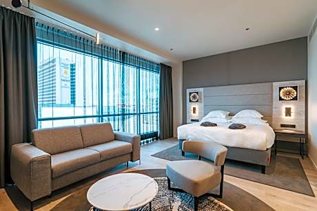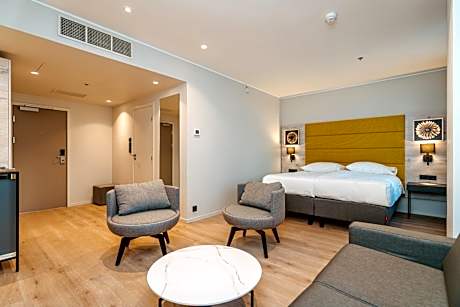 4-star Tallink City Hotel is a combination of location and high quality. Located just outside Tallinn’s medieval Old Town, 2789 feet from the Town Hall Square, the hotel features 2 saunas, a beauty parlor and elegant rooms with free internet. All air-conditioned rooms at the City Hotel come with satellite TV, a safe and a mini-bar. A varied buffet breakfast is served in the City Grill House, which specializes in international dishes. Front desk staff is available 24 hours a day and can arrange for concierge service or assist with luggage storage. A selection of massage treatments is also available. Tallink City Hotel is located only 0.6 mi from Tallinn’s Passenger Port and 1.2 mi from Central Railway Station. Private parking is available on site. The relaxation area and spa facilities are for people 18 years and older and need to be pre-booked for at least 2 hours in advance. The Relaxation area ticket is 16 € per person and is valid for 2 hours (open every day 5-10pm). Find parking facilities and information in our website: https://hotels.tallink.com/en/tallink-city-hotel (NB! Parking in the hotel only available if there are vacant spaces. No pre-booking available).