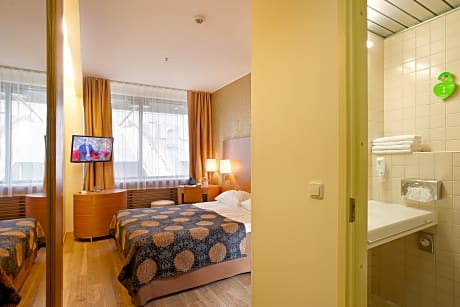 The comfortably compact air conditioned double rooms have high-quality and very comfortable continental beds. All rooms include TV, mini-bar, safety deposit box and blackout curtains and have parquet floor.