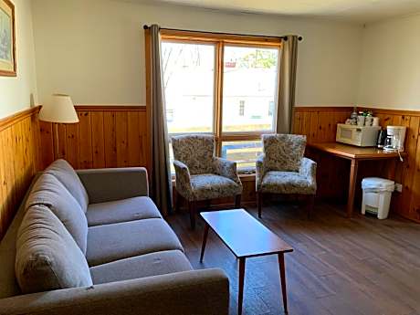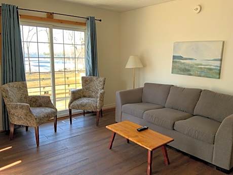 This two-bedroom cottage features a fully-equipped kitchen. The living room features a sofa bed, satellite TV and a fireplace. The bathroom has a jetted tub and shower. The unit is located within a short walking distance from the shores of Peninsula Lake.