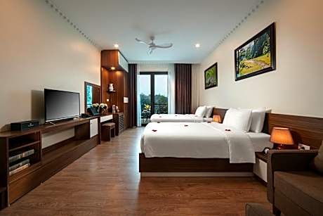Experience an abundance of unparalleled facilities and features at Tam Coc Holiday Hotel & Villa. Maintain seamless communication using the complimentary Wi-Fi at hotel.Effortlessly arrange transportation to and from the airport using the hotel's airport transfer services. Discovering Ninh Bình becomes even more accessible through the taxi, car hire and shuttle amenities provided at the hotel. For visitors traveling by automobile, complimentary parking is available.During your stay at this fantastic hotel, the attentive front desk personnel can provide you with a range of amenities such as concierge service, express check-in or check-out, luggage storage and safety deposit boxes.In search of city's top entertainment, seek assistance at the hotel's ticket service and tours for reservations.During chilly days and evenings, the hotel provides an in-house fireplace to ensure your warmth.At the hotel, utilize the on-site dry cleaning service and laundry service to maintain your beloved travel attire fresh, allowing you to bring fewer clothes. Craving relaxation? Make the most of your stay at the Tam Coc Holiday Hotel & Villa with convenient amenities like 24-hour room service, room service and daily housekeeping at your disposal. For visitors wishing to smoke, designated smoking zones can be found. At Tam Coc Holiday Hotel & Villa, every guestroom is provided with convenient amenities and fittings to ensure a comfortable stay. Enhance your experience at hotel with the knowledge that certain rooms are equipped with linen service, blackout curtains and air conditioning for your convenience. A few accommodations within Tam Coc Holiday Hotel & Villa offer unique design elements such as a balcony or terrace. Certain rooms boast in-room amusement features such as television and cable TV, offering guests an enjoyable stay.In select rooms within the hotel, a refrigerator, bottled water and mini bar is available to cater to your requirements when desired. It is worth noting that certain guest bathrooms feature a hair dryer, toiletries and bathrobes for your convenience. Begin your day carefree at Tam Coc Holiday Hotel & Villa, as complimentary breakfast is offered for your convenience. Begin your day feeling refreshed and invigorated as you enjoy a delightful cup of quality coffee available at the cafe situated within the hotel.At the hotel, an assortment of easily accessible and delicious meal choices are available to satisfy your appetite whenever it strikes.Enjoy an entertaining evening with your fellow travelers at the hotel's bar. At Tam Coc Holiday Hotel & Villa, visitors have the option to receive groceries directly in their accommodation, ensuring outstanding comfort and simplicity when it comes to meals.Do you excel in cooking? Prepare your personal dishes on-site at hotel's BBQ facilities and shared kitchen.During your stay at hotel, an array of engaging activities and amenities guarantees a delightful experience.During your stay, don't forget to allocate some moments to experience the readily available shoreline.Conclude your holiday experience perfectly by visiting spa before you depart. Be sure to drop by the pool at hotel at least once during your stay.At Tam Coc Holiday Hotel & Villa, utmost care is taken to ensure guests' comfort. Relish your preferred beverage in your swimwear by the hotel's poolside bar. Discover the fitness amenities at hotel to maintain your health and strength during your getaway.