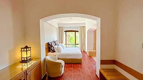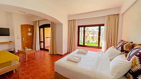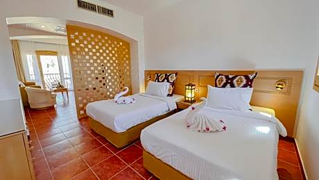 Located in the Nabq area and directly on the beach, this elegant 5 star hotel offers rooms with balconies overlooking the Red Sea. It features a landscaped pool area and a private beach with jetty to dove off. All air-conditioned rooms at Tamra Beach Hotel have a bathtub that overlooks the Gulf of Aqaba. Rooms have modern furnishings and come equipped with cable TV and a safety deposit box. In the morning, the hotel serves a buffet breakfast with fresh fruit. The hotel’s restaurant serves international cuisine and regional specialties. A range of sports activities are available on site such as tennis, ping-pong, beach volleyball, and padel. Other activities include football and aquarobics. Naama Bay, with its promenade, is 14 miles from Tamra Beach Resort. Sharm El Sheikh International Airport is 10 minutes drive away. An airport service is available upon request. Parking is available on-site.