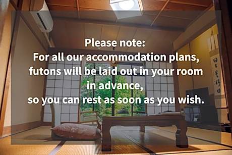 This air-conditioned room features tatami (woven-straw) floors and Japanese futon bedding. Includes a flat-screen TV, a fridge and an electric kettle. Comes with a private toilet but bathrooms are shared. Guests can request for rooms with garden views at time of booking.