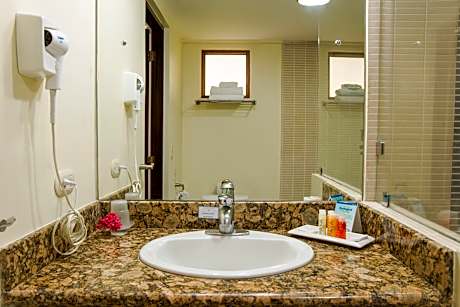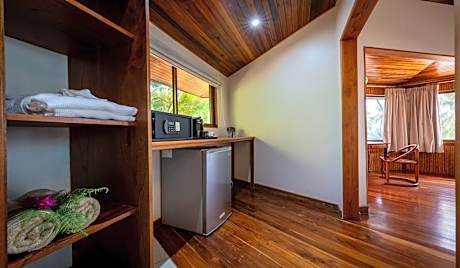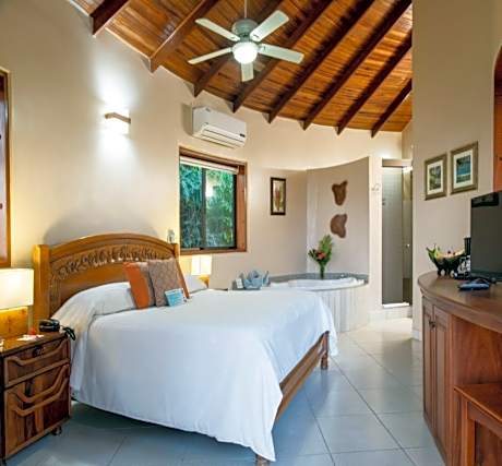 TROPICAL is 377 square feet and includes a king-size bed 150-183 width plus desk, satellite tv , hairdryer, and safe and is Wheelchair-accessible.