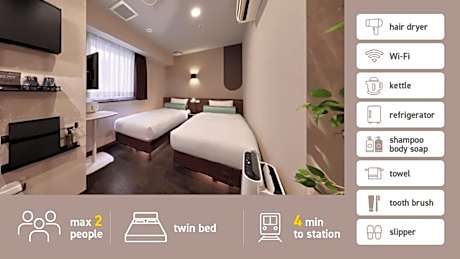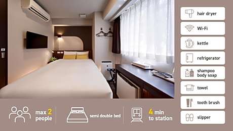 At Tanimachi LUXE HOTEL, exceptional service and top-notch amenities create a memorable experience for guests.Complimentary internet access is available in the hotel to ensure you stay connected during your visit. Amenities at taxi offered by Tanimachi LUXE HOTEL simplify the organization of your excursions, tourist activities, and other adventures in Osaka.Continuously receive the support you require through front desk amenities such as luggage storage.Desire to unwind? Make the most of your visit at Tanimachi LUXE HOTEL with accessible amenities such as daily housekeeping. Due to health concerns, smoking is strictly prohibited within the entire premises of hotel. For the health and well-being of all guests and staff, smoking is restricted exclusively to assigned zones.Accommodations come equipped with all the conveniences required for a restful night's slumber. A selection of rooms feature linen service, blackout curtains and air conditioning to ensure your comfort and convenience. A number of rooms feature television for guest amusement and enjoyment. In certain rooms, the hotel offers visitors access to a refrigerator, bottled water, instant coffee and instant tea. In the hotel, certain guest bathrooms come equipped with essential bathroom amenities, such as a hair dryer, toiletries and towels, ensuring a comfortable stay for guests. At Tanimachi LUXE HOTEL, affordable refreshments are available 24/7 through the convenient vending machines on-site.
