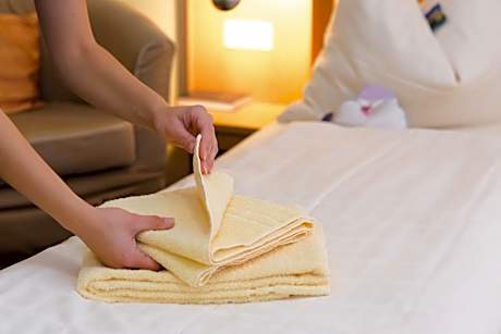 - Bed sheets and towels are washed at a temperature of at least 60°C/140°F
