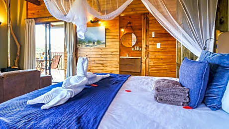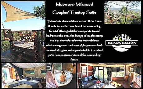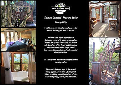 Teniqua Treetops is a tented treetop resort set in the lush forest along the Garden Route between Knysna and Sedgefield. These eco-friendly, hand-crafted tree houses offer a unique alternative for self-catering accommodations. Along with a large terrace where you can enjoy the forest views, they include Air conditioning, free Wi-Fi in the rooms, private bathroom and microwave. Teniqua Treetops is located high on the foothills of the Outeniqua mountain range. Seven Passes Road is 1.2 mi away, offering a scenic drive. Sedgefield beaches are just 20 minutes' drive away and Knysna is 30 minutes' drive.