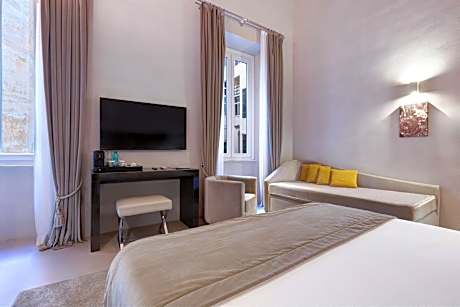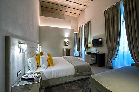 Just 656 feet from the Pantheon, Terrace Pantheon Relais offers a panoramic terrace and stylish rooms. Piazza Navona is 5 minutes’ walk from the property. All air conditioned, rooms here include a flat-screen TV and an electric kettle. The modern private bathroom has a hairdryer and free toiletries. A sweet and savory breakfast buffet is available daily, served in an elegant breakfast room. It includes cold cuts and scrambled eggs. Campo de’ Fiori is 1476 feet away on foot.