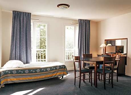 This Appart'Hotel La Roche Posay - Terres de France resort is located in La Roche Posay, in the center of the thermal baths and 16 miles east of Chatellerault. It has an outdoor swimming pool and offers studios and apartments equipped with modern amenities. Apartments at the Appart'Hotel La Roche Posay - Terres de France have a living room with a TV and sofa bed. Each apartment has a kitchen equipped with a microwave and dishwasher. Appart'Hotel La Roche Posay - Terres de France is a 3-minute walk from the village's hydrotherapy center. The residence is ideally located for local hiking trails and Futuroscope amusement park in Poitiers, which is a 45-minute drive away.