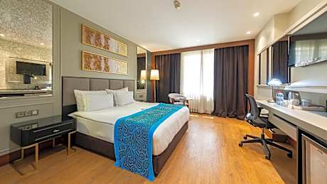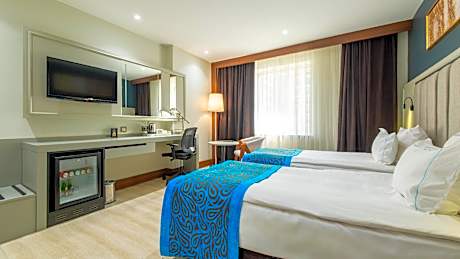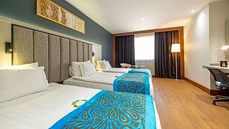 Experience an abundance of unparalleled facilities and features at Teymur Continental Hotel & Convention Center. Maintain seamless communication using the complimentary Wi-Fi at hotel. Effortlessly arrange transportation to and from the airport using the hotel's airport transfer services.Guests can avail parking facilities at the hotel.For extended visits or whenever required, the laundry service ensures your preferred travel garments remain fresh and accessible. During leisurely days and evenings, on-site amenities such as daily housekeeping enable you to fully enjoy your accommodation.At Teymur Continental Hotel & Convention Center, every guestroom is provided with convenient amenities and fittings to ensure a comfortable stay.Enhance your experience at hotel with the knowledge that certain rooms are equipped with linen service and air conditioning for your convenience.A few accommodations within Teymur Continental Hotel & Convention Center offer unique design elements such as a separate living room.Certain rooms boast in-room amusement features such as television and cable TV, offering guests an enjoyable stay. In select rooms within the hotel, bottled water, instant tea and mini bar is available to cater to your requirements when desired.It is worth noting that certain guest bathrooms feature a hair dryer, toiletries, bathrobes and towels for your convenience. Begin your day with a scrumptious on-site breakfast available each morning at Teymur Continental Hotel & Convention Center.At the hotel, an assortment of easily accessible and delicious meal choices are available to satisfy your appetite whenever it strikes. Enjoy an entertaining evening with your fellow travelers at the hotel's bar.During your stay at hotel, an array of engaging activities and amenities guarantees a delightful experience.Be sure to drop by the pool at hotel at least once during your stay. License Number(s): 18751