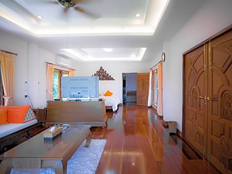 Thararin Villa provides flawless service and all the necessary facilities for visitors. Stay connected with your associates, as complimentary Wi-Fi is available during your entire visit. The resort villa offers shuttle amenities to assist you in discovering your desired offerings in Suphan Buri.When arriving by car, you'll be grateful for the on-site complimentary parking at resort villa. Whether it's an extended stay or simply needing fresh attire, dry cleaning service and laundry service provided by resort villa ensures your cherished travel garments stay spotless and accessible.The resort villa's daily housekeeping ensures an excellent option for your stay. In order to ensure the utmost level of relaxation, the guestrooms feature an inviting design and are equipped with all basic necessities, creating a delightful stay experience. To ensure a pleasant stay, a selection of rooms at resort villa come furnished with linen service and air conditioning, all designed with your ease in mind.Several chosen accommodations at Thararin Villa have a balcony or terrace incorporated into the room design.In select rooms, visitors can enjoy a touch of amusement with the availability of television and cable TV for their entertainment needs. Within specific rooms, a refrigerator, bottled water, instant coffee, instant tea and mini bar is conveniently available for your use.Understanding the significance of bathroom facilities in enhancing visitor contentment, resort villa offers a hair dryer, toiletries and towels within a few chosen chambers. Start your day stress-free at Thararin Villa as breakfast is made available for you on the premises. Various excellent meal offerings at resort villa ensure that enticing and easily accessible options are constantly available.Upon your arrival, don't miss experiencing bar for enjoyable in-house evening entertainment. Within the resort villa, discerning guests will also find on-site culinary facilities like BBQ facilities and shared kitchen to further cater to their needs.Throughout the day, engage in the entertaining activities available at Thararin Villa.Unwind effortlessly each day by exploring the solarium, conveniently situated within the resort villa.