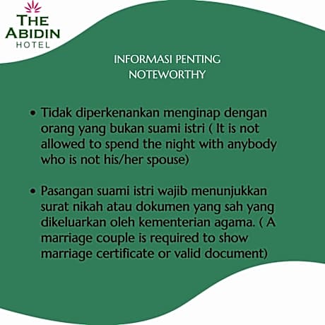 The Abidin Hotel Syari'ah is located in Padang, a 18-minute walk from Samudra Beach and 1.5 miles from Siti Nurbaya Bridge. Featuring a terrace, the 1-star hotel has air-conditioned rooms with a private bathroom. The property has a 24-hour front desk, airport transportation, room service and free WiFi. The rooms at the hotel come with a seating area and a TV with satellite channels. All rooms have a desk. Minangkabau International Airport is 17 miles from the property.