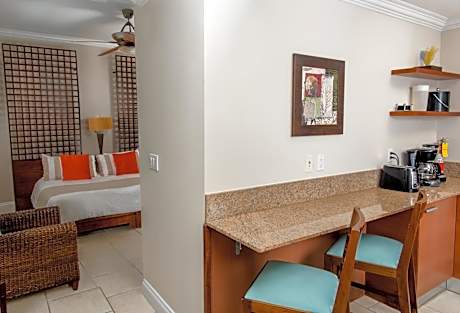 A family friendly resort with an beautiful location on spectacular Grace Beach, Alexandra Resort features a large pool and a beach area. Complimentary Wi-Fi is available throughout the resort. Providenciales Airport is only 10 minutes’ drive. All meals at the any of the resort’s restaurants as well as unlimited domestic and premium beverages at any of the resort’s restaurants, bars and swim up pool bar are included. All-inclusive access is also provided to sister resort as well as complimentary shuttle between our two resorts. Some of the elegant suites at Alexandra Resort look over the lovely coastline from a private balcony or terrace. Each suite features air conditioning, cable TV, DVD player and a full kitchen or kitchenette. The international-style restaurant overlooks Grace Bay Beach and it serves a variety of international and Caribbean dishes. The pool has its own swim-up bar, with a range of signature cocktails. Free use of resort amenities including exercise room, tennis courts, non-motorized watersports including water trampoline, snorkeling, kayaks, stand up paddle boards and sail boats. The marinas at Sapodilla Bay and Leeward offer bars and restaurants and are within a few minutes’ drive.