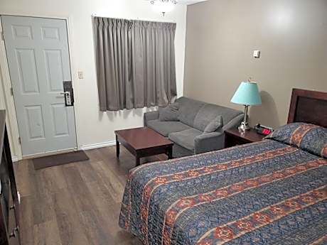 Featuring Hailey's restaurant, this North Battleford motel provides free WiFi. A refrigerator and a microwave are offered in all guest rooms. Aquadeo Beach Golf Course is 1.2 mi away. A cable TV and a seating area are provided in rooms at Battleford Inn. A coffee maker is included. A 24-hour reception greets guests of Inn Battlefords. Free parking is provided on site. Air conditioning is offered for added comfort and pet-friendly rooms are available. The Rustic Nine Golf Course is 6 minutes’ drive away. Saskatchewan Baseball Hall of Fame & Museum is 3.7 mi from Battlefords Inn.
