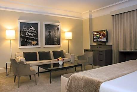 Located in the heart of Portland's city center, The Benson Portland, Curio Collection by Hilton, combines historic charm with modern amenities. Just 12 miles from Portland International Airport, this hotel stands as a pillar of elegance featuring Italian marble floors and Austrian crystal chandeliers. Guests can enjoy the convenience of on-site dining at The Palm Court, which serves meals throughout the day along with a selection of wines and spirits.