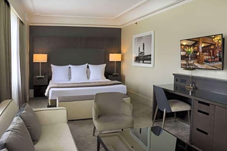 Each elegantly appointed room is equipped with a flat-screen TV, cable, and complimentary WiFi, ensuring a blend of comfort and connectivity. Tea and coffee-making facilities are provided, with bathrobes and slippers available upon request. The hotel offers a 24-hour gym for health-conscious travelers, while a business center and conference facilities cater to the needs of business guests.