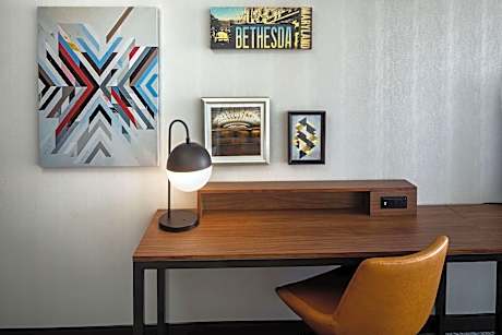This Bethesda hotel is located in the downtown shopping and entertainment district. The hotel offers on-site dining options. The Bethesdan Hotel, Tapestry Collection by Hilton features a 55-inch flat-screen TV' and spacious work desk in every room. Rooms are also equipped with coffee makers and ironing facilities. Guests can use the well-equipped gym or the free business center. Enjoy a morning latte at Fialova to Go or sip a cocktail at BFD Bar. Located on site, Fialova serves fresh American dishes with a Mediterranean twist. The National Institutes of Health and Walter Reed National Military Medical Center are 3 blocks from the The Bethesdan Hotel, Tapestry Collection by Hilton. Washington, D.C. attractions, including the Smithsonian Institute, are easily accessible by the nearby Medical Center Metro Station.