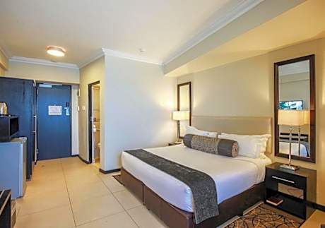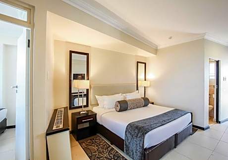 Opposite Durban’s famous beachfront, Blue Waters Hotel is within walking distance of the Suncoast Casino and the iconic Moses Mabhida Stadium. Both uShaka Marine World and Greyville Racecourse are within 2.5 mi from the property. The spacious rooms and suites feature LCD TVs along with coffee-and-tea-making facilities. Each is equipped with air conditioning and a work desk. There is also plenty of luggage storage space. Most rooms come with furnished balconies and offer a view of the Indian Ocean. Guests at Blue Waters can enjoy afternoon tea and cake in the Florida Lounge overlooking the ocean. The Versailles Restaurant provides buffet and á la carte service for lunch and dinner. Leisure facilities at the Hotel Blue Waters include an indoor swimming pool, sauna and a squash court. There is also an outdoor rooftop swimming pool and guests can enjoy drinks with sunset views at the rooftop bar. The Durban North Beach area is a good location for walking, running and cycling. Hotel Blue Waters is 5 minutes’ drive from the Durban ICC and 10 minutes’ drive from Durban’s city center. Durban Station is 1.2 mi away, while King Shaka International Airport is 19 mi from the property.