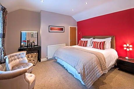 Bedroom 7 (mirroring and next to room 6) - A slightly larger room with two easy chairs decorated in a tasteful boutique style. Sleep in a super king-size bed on a quality mattress with crisp white linen, pillows and a throw. All rooms come with small en-suites with showers. Located on the 1st floor of the property overlooking the main road of Bondgate Without. Potential for noise.