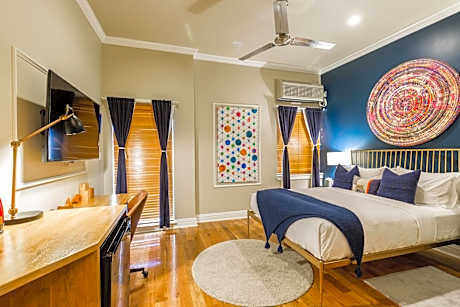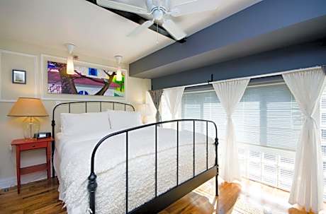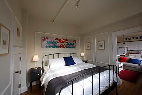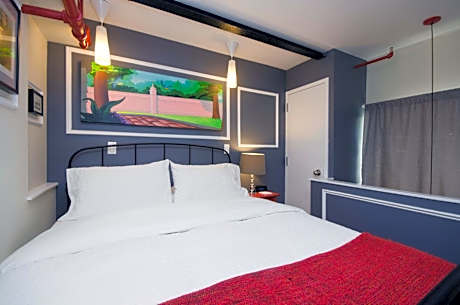 Located in the vibrant Greenpoint neighborhood of Brooklyn, The Box House Hotel offers a unique stay in a converted factory setting. This distinctive hotel features lofts and suites adorned with curated original artwork, providing an artistic and comfortable atmosphere. Each apartment-style accommodation includes a 42-inch flat-screen TV, a sofa bed, and a fully equipped kitchen, with select rooms offering terraces and stunning views of Midtown Manhattan. Complimentary WiFi is available throughout the hotel.