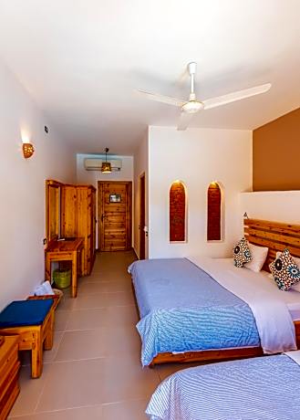 The Bridge Dahab has an outdoor swimming pool, garden, a terrace and restaurant in Dahab. Built in 2018, the property is within a 6-minute walk of Dahab Beach. The property has room service, a 24-hour front desk and currency exchange for guests. At the hotel, the rooms come with a closet. Rooms include a private bathroom, a safety deposit box and free WiFi, while certain rooms have a balcony and some have pool views. The rooms at The Bridge Dahab have air conditioning and a desk. An à la carte, continental or Full English/Irish breakfast is served at the property. Sharm el-Sheikh International Airport is 58 miles from the property.