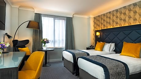 Guests can enjoy modern cuisine at the elegant Iveagh Restaurant or relax at the C Central bar, which offers a relaxed atmosphere, light snacks, and large flat-screen TVs showing news and sports. The hotel’s prime location on the Luas line, Dublin’s tram system, provides excellent access to the city, with Dublin Castle and the Temple Bar district just a 10-minute walk away.