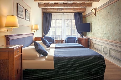 The Charles hotel enjoys a central location in Lesser Town, 328 feet from Charles Bridge and a 15-minute walk from Prague Castle. Free WiFi in all areas and paid street parking are offered. This historic building with Baroque-style furniture and wooden beamed ceilings dates back to 1857 and is fully air-conditioned. All rooms are provided with a mini-bar, satellite flat-screen TV, a safety deposit box, and a bathroom with a bath or a shower and a hairdryer. Buffet breakfast is served every morning at the restaurant on the ground floor. Guests can also have a drink in a bar. The Malostranská Metro Station is 2133 feet away. Old Town Square with the Orloj Astronomical Clock can be reached within 0.8 mi and Wenceslas Square is 1.1 mi away.