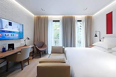 Located in Barcelona, 0.7 mi from Casa Batllo, The Corner Hotel provides accommodations with an outdoor swimming pool, private parking, a bar and a terrace. Among the facilities at this property are a 24-hour front desk and room service, along with free WiFi throughout the property. Guests can have a drink at the snack bar. All units at the hotel include air conditioning, a flat-screen TV with satellite channels,and a private bathroom with a bath or shower, bathrobes and slippers. At The Corner Hotel every room comes with bed linen and towels. A buffet breakfast is available daily at the accommodations. Popular points of interest near The Corner Hotel include Passeig de Gracia, Plaça Catalunya and La Pedrera. The nearest airport is Barcelona El Prat Airport, 7.5 mi from the hotel.