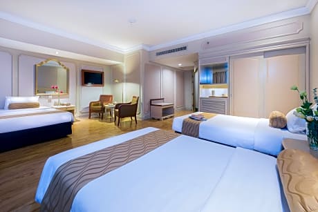 At The Emerald Hotel - Bangkok, exceptional service and top-notch amenities create a memorable experience for guests.Complimentary internet access is available in the hotel to ensure you stay connected during your visit. Arrange your trips to and from the airport using the hotel's convenient transportation services booking.Discover the wonders of Bangkok with ease by utilizing the services provided by taxi and car hire. Complimentary parking is available for guests. Continuously receive the support you require through front desk amenities such as concierge service, express check-in or check-out, luggage storage and safety deposit boxes. At the hotel, their ticket service and tours is also capable of assisting with booking tickets and securing reservations for entertainment and adventures. Always look your best in your preferred attire with the dry cleaning service and laundry service provided at The Emerald Hotel - Bangkok. Craving relaxation? In-room amenities such as 24-hour room service, room service and daily housekeeping allow you to maximize your time spent inside the room.For the health and well-being of all guests and staff, smoking is restricted exclusively to assigned zones. Accommodations come equipped with all the conveniences required for a restful night's slumber.A selection of rooms feature blackout curtains and air conditioning to ensure your comfort and convenience. A few accommodations at The Emerald Hotel - Bangkok also include unique design elements like a separate living room.A few chosen rooms are equipped with daily newspaper, television and cable TV to ensure guest amusement.In certain rooms, the hotel offers visitors access to a refrigerator, bottled water, a coffee or tea maker, instant coffee, instant tea and mini bar.In the hotel, certain guest bathrooms come equipped with essential bathroom amenities, such as a hair dryer, toiletries and bathrobes, ensuring a comfortable stay for guests. A delightful breakfast is the perfect way to begin your day, and at The Emerald Hotel - Bangkok, you can always indulge in a scrumptious meal on-site. All adore a delightful cup of coffee! An on-site coffee shop ensures you can relish a cup of authentic, freshly-brewed coffee every morning -- or whenever you desire it.Allow your journey to be free from the pangs of hunger! On-site eateries offer delicious and accessible meal choices. An evening spent at hotel's nightclub can offer as much enjoyment as venturing out with your fellow travelers. At The Emerald Hotel - Bangkok, guests can take pleasure in the delightful recreational amenities provided for their entertainment.Conclude your days in complete tranquility by paying a visit to massage and hot tub for ultimate relaxation.At The Emerald Hotel - Bangkok, a wide array of amenities guarantees a fulfilling experience throughout your visit. Make your holiday truly memorable by taking a rejuvenating plunge into the pool. At The Emerald Hotel - Bangkok, the poolside bar provides an excellent incentive to enjoy extended hours in your swimwear.At the hotel fitness center, you have the option to engage in your daily exercise routine or simply alleviate your jet lag by breaking a sweat.